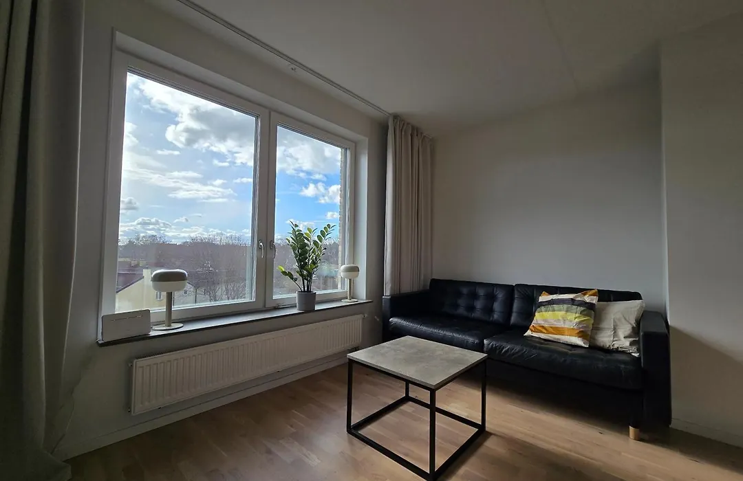 The 38 m² Centralt And Modernt Stockholm apartment, located in the Aelvsjoe district of Stockholm, approximately 5 km from the indoor Ericsson Globe Arena, features views of the city.